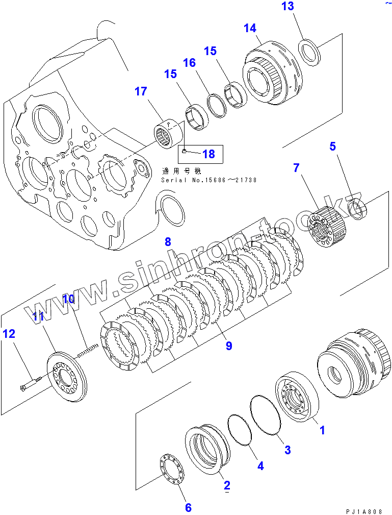 Каталог запасных частей к технике: Komatsu D155C-1. WINCH CLUTCH (1/3)