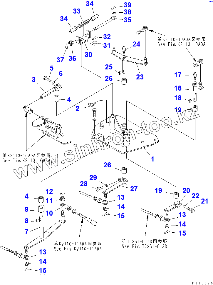 Каталог запасных частей к технике: Komatsu D155C-1. WINCH CONTROL LEVER LINKAGE(31574-)