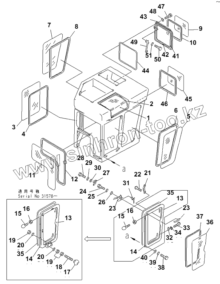 Каталог запасных частей к технике: Komatsu D155C-1 (спец.). CAB (DOOR AND WINDOW)