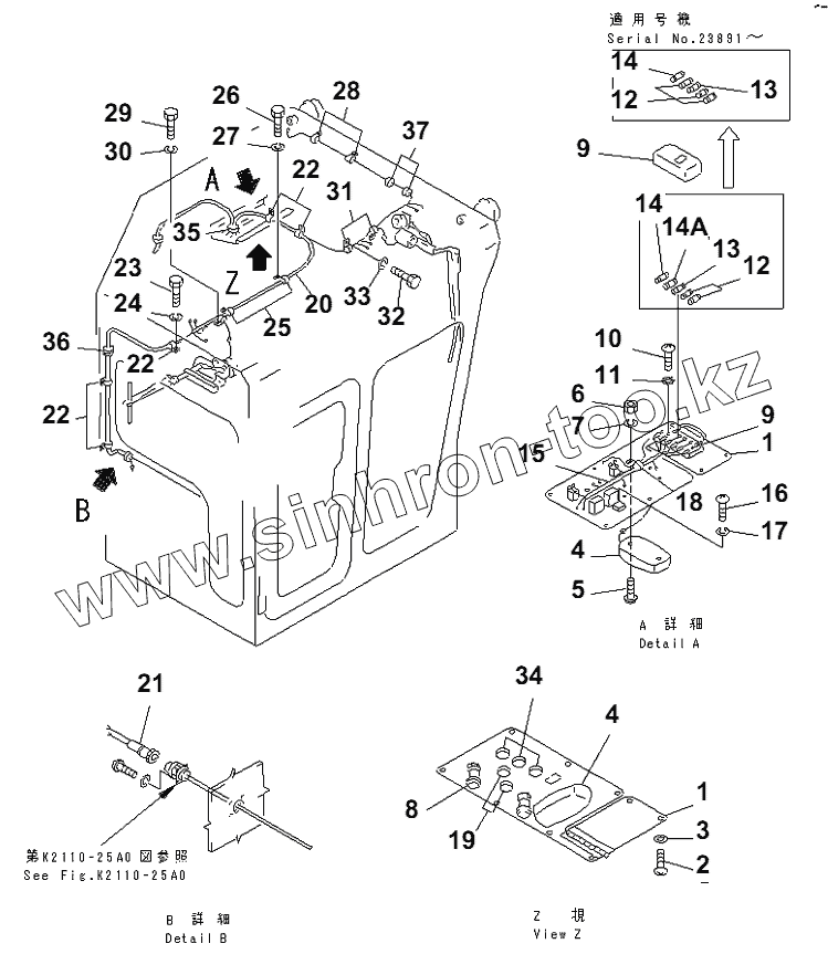 Каталог запасных частей к технике: Komatsu D155C-1 (спец.). CAB (ELECTRICAL PARTS)(№31586-)