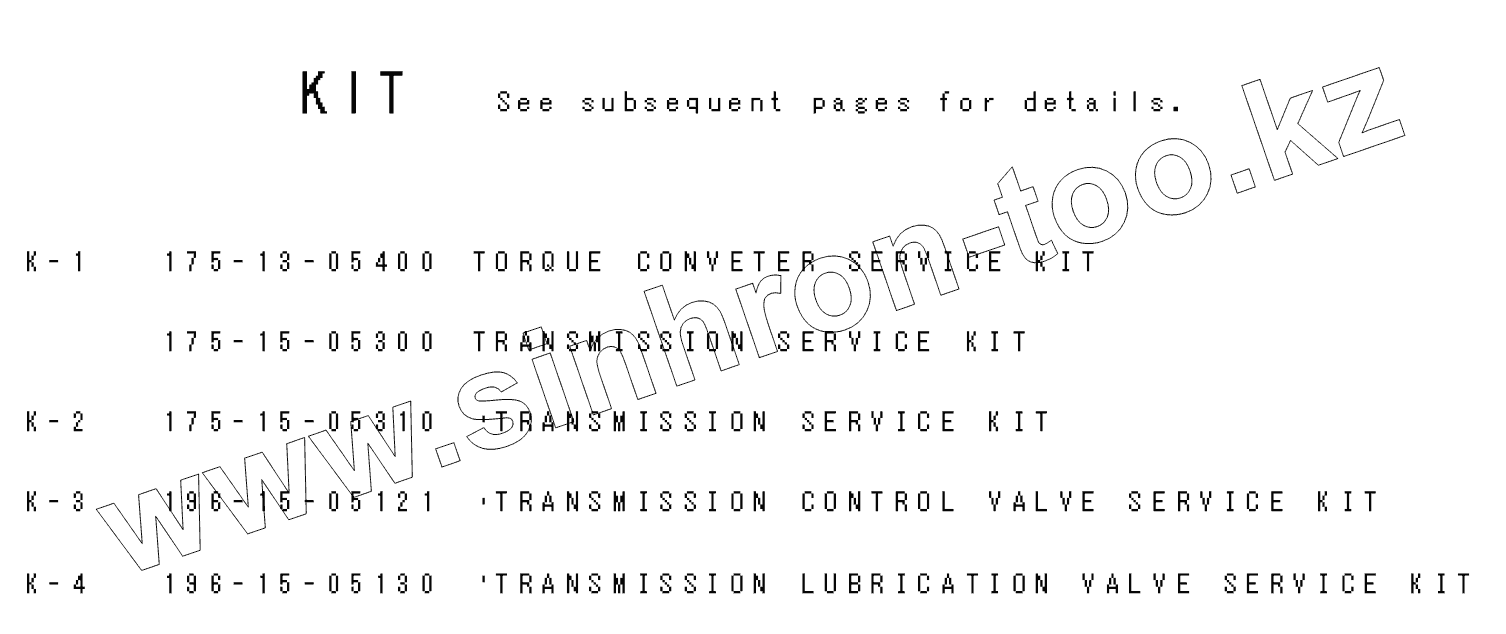 Каталог запасных частей к технике: Komatsu D155C-1 (спец.). SERVICE KIT(№15686-31302)