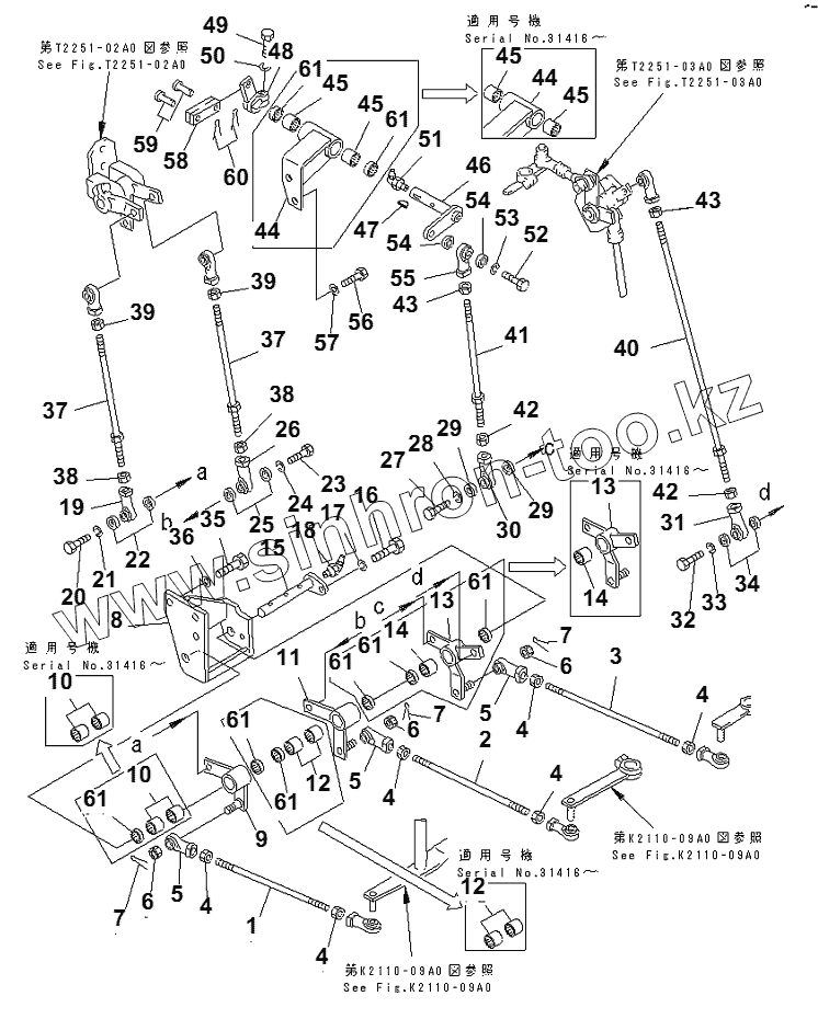 Каталог запасных частей к технике: Komatsu D155C-1 (спец.). WINCH CONTROL LEVER LINKAGE (1/3)