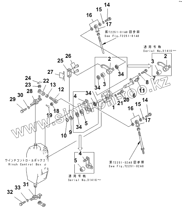Каталог запасных частей к технике: Komatsu D155C-1 (спец.). WINCH CONTROL LEVER LINKAGE (3/3)