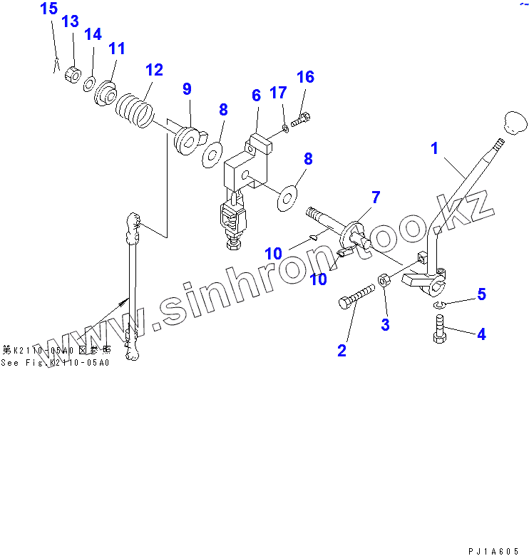 Каталог запасных частей к технике: Komatsu D155C-1D. ENGINE CONTROL LEVER (1/3)