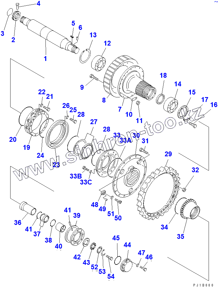 Каталог запасных частей к технике: Komatsu D155C-1D. FINAL DRIVE GEAR AND SHAFT