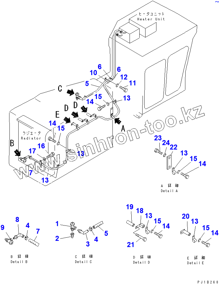 Каталог запасных частей к технике: Komatsu D155C-1D. HEATER PIPING