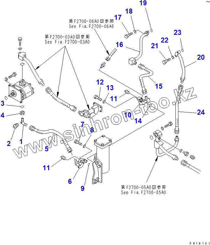 Каталог запасных частей к технике: Komatsu D155C-1D. TORQFLOW TRANSMISSION PIPING