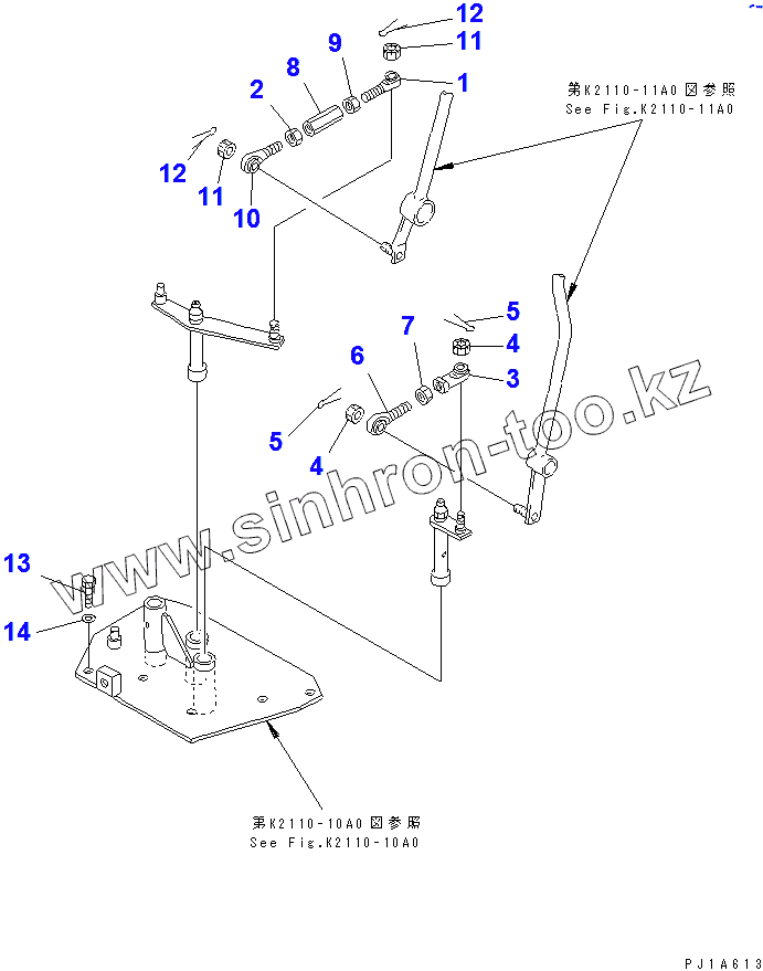 Каталог запасных частей к технике: Komatsu D155C-1D. WINCH CONTROL LEVER LINKAGE