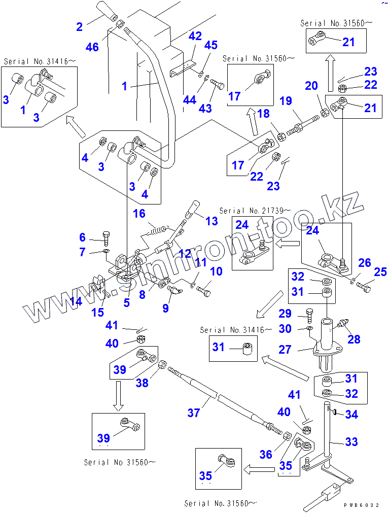 Каталог запасных частей к технике: Komatsu D155C-1P. BOOM CONTROL LEVER(15686-31573)