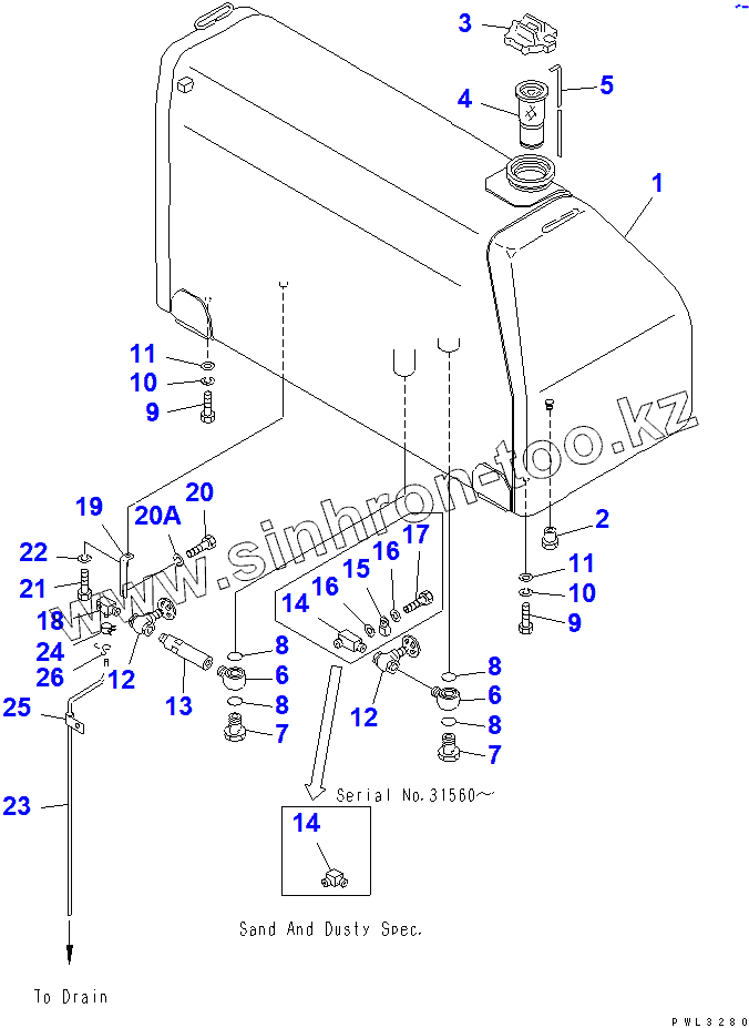 Каталог запасных частей к технике: Komatsu D155C-1P. FUEL TANK(15686-31573)