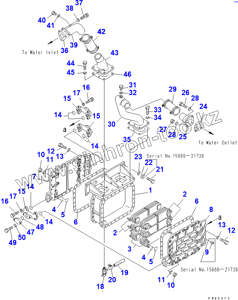 Каталог запасных частей к технике: Komatsu D155C-1P. OIL COOLER(15686-31573)