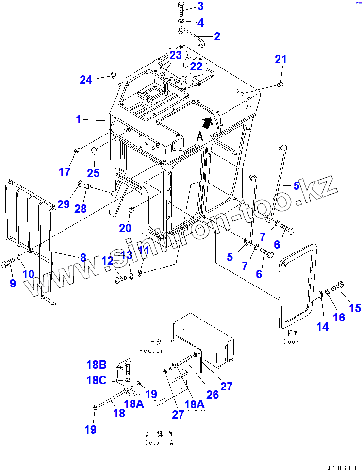Каталог запасных частей к технике: Komatsu D355C-3. CAB (BODY)(14404-)