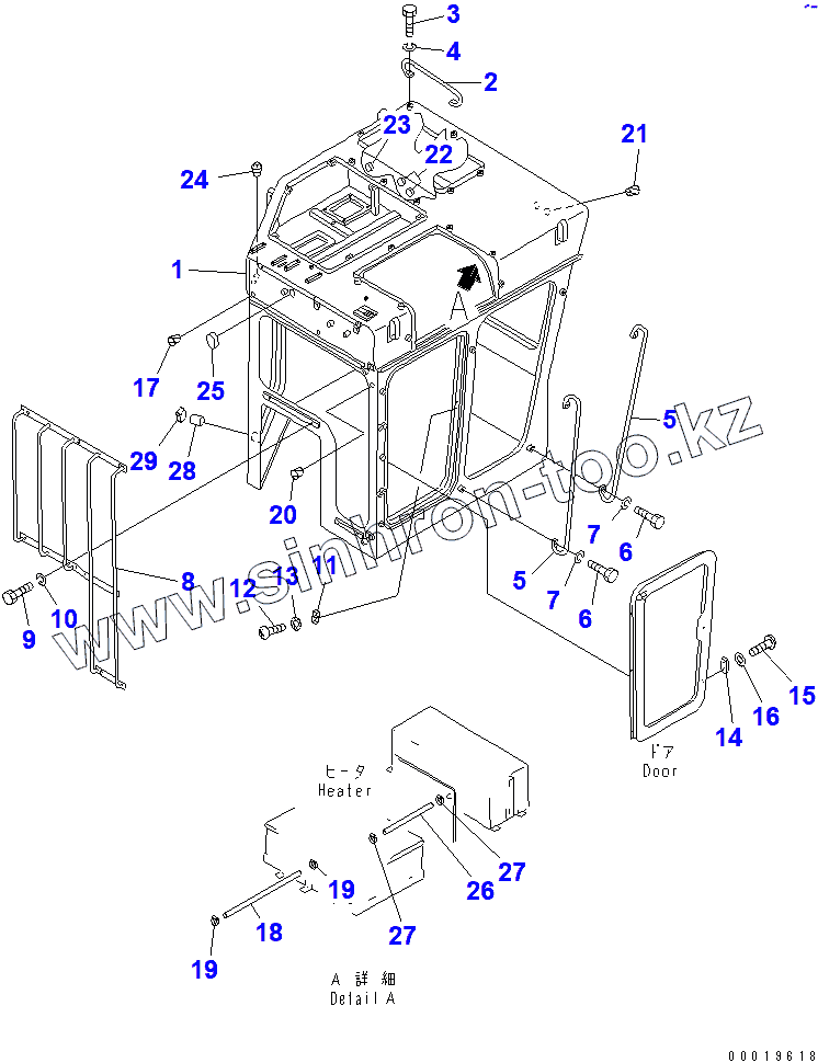 Каталог запасных частей к технике: Komatsu D355C-3. CAB (BODY) (WITH BEACON)(14543-)