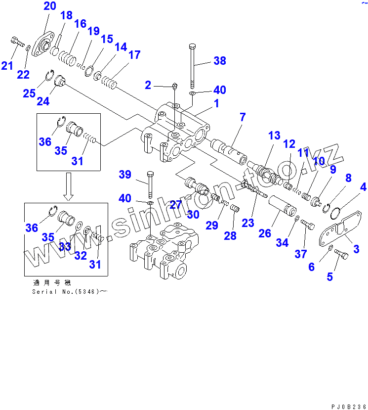 Каталог запасных частей к технике: Komatsu D355C-3. CONTROL VALVE (UPPER)