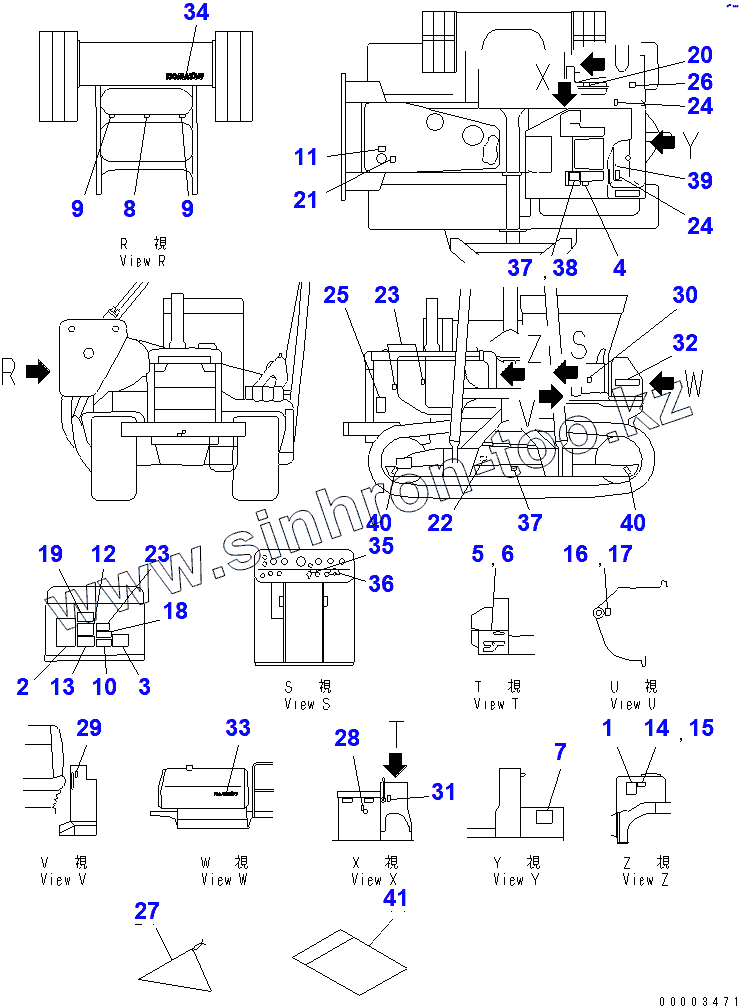 Каталог запасных частей к технике: Komatsu D355C-3. DECAL AND PLATE (FRENCH)(14449-)