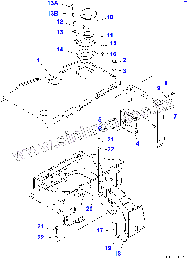Каталог запасных частей к технике: Komatsu D355C-3. ENGINE HOOD (SAND TERRAIN SPEC.)(14449-)