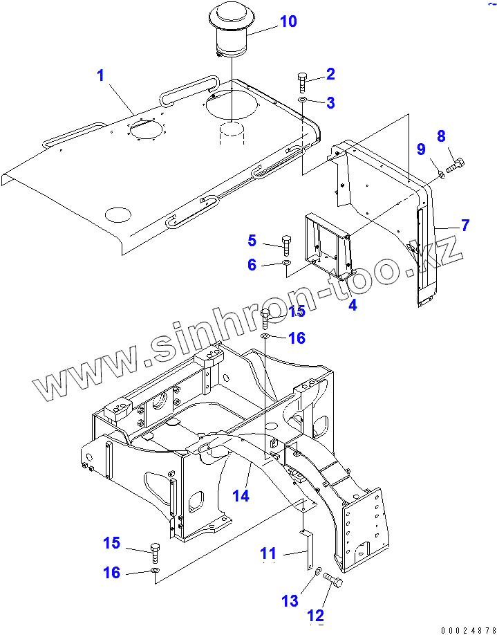 Каталог запасных частей к технике: Komatsu D355C-3. ENGINE HOOD (WITH SAFETY DEVICE)(14413-)