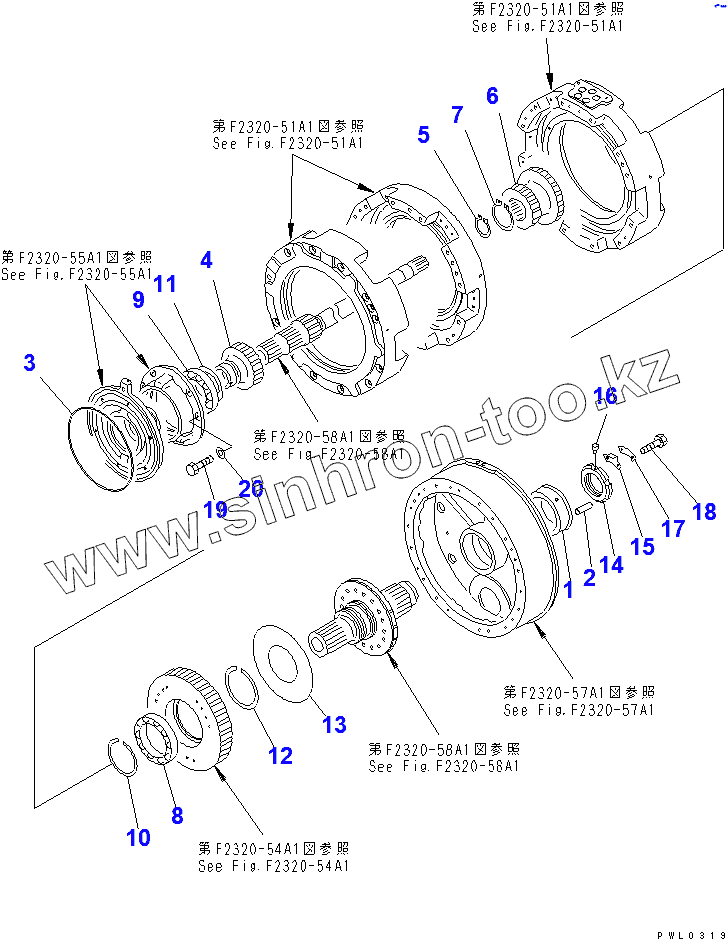 Каталог запасных частей к технике: Komatsu D355C-3. TRANSMISSION BARE (2/2)