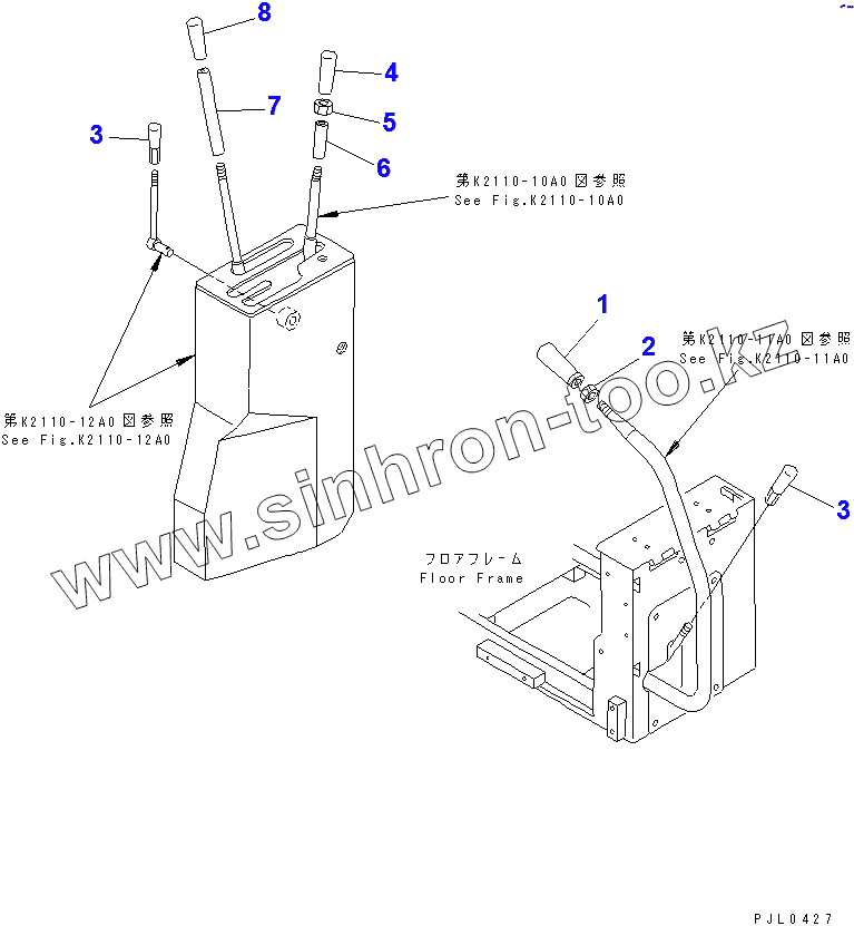 Каталог запасных частей к технике: Komatsu D355C-3. WINCH CONTROL LEVER KNOB
