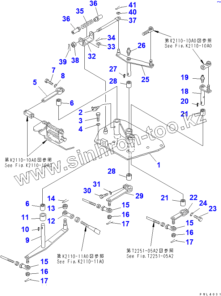 Каталог запасных частей к технике: Komatsu D355C-3. WINCH CONTROL LEVER LINKAGE