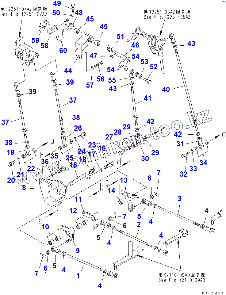 Каталог запасных частей к технике: Komatsu D355C-3. WINCH CONTROL LEVER LINKAGE (1/3)