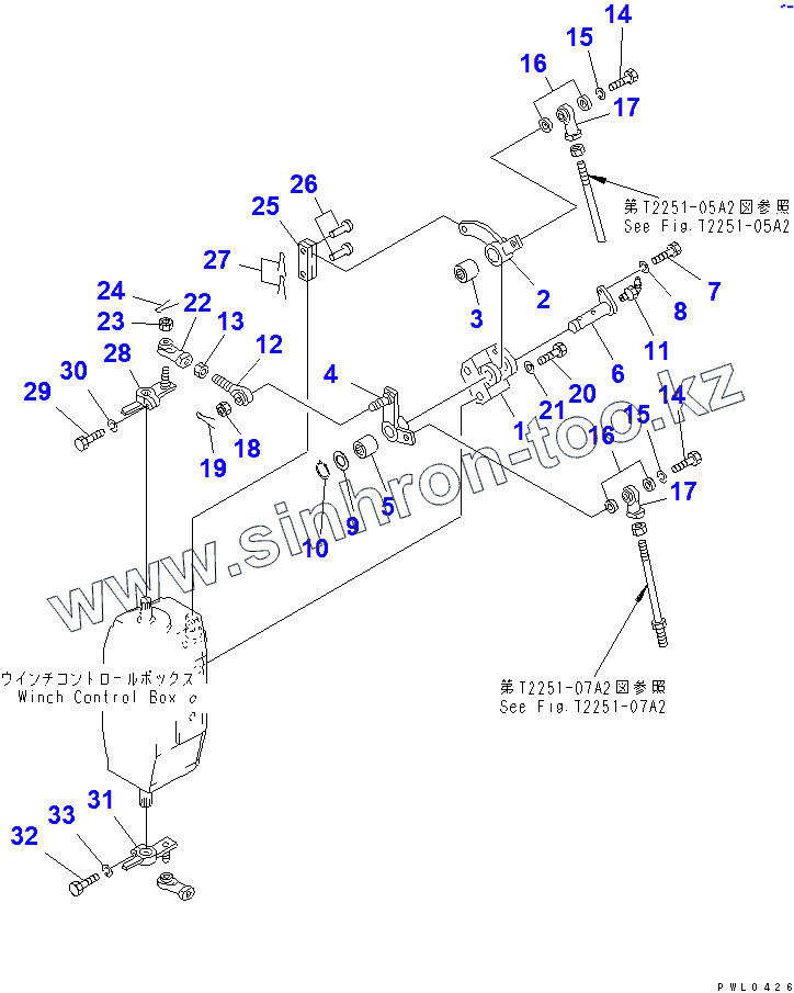 Каталог запасных частей к технике: Komatsu D355C-3. WINCH CONTROL LEVER LINKAGE (3/3)
