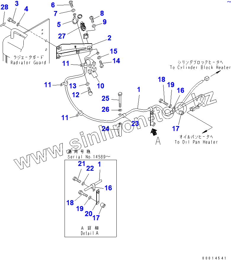 Каталог запасных частей к технике: Komatsu D355C-3. WIRING HARNESS (ENGINE HEATER)(14286-)