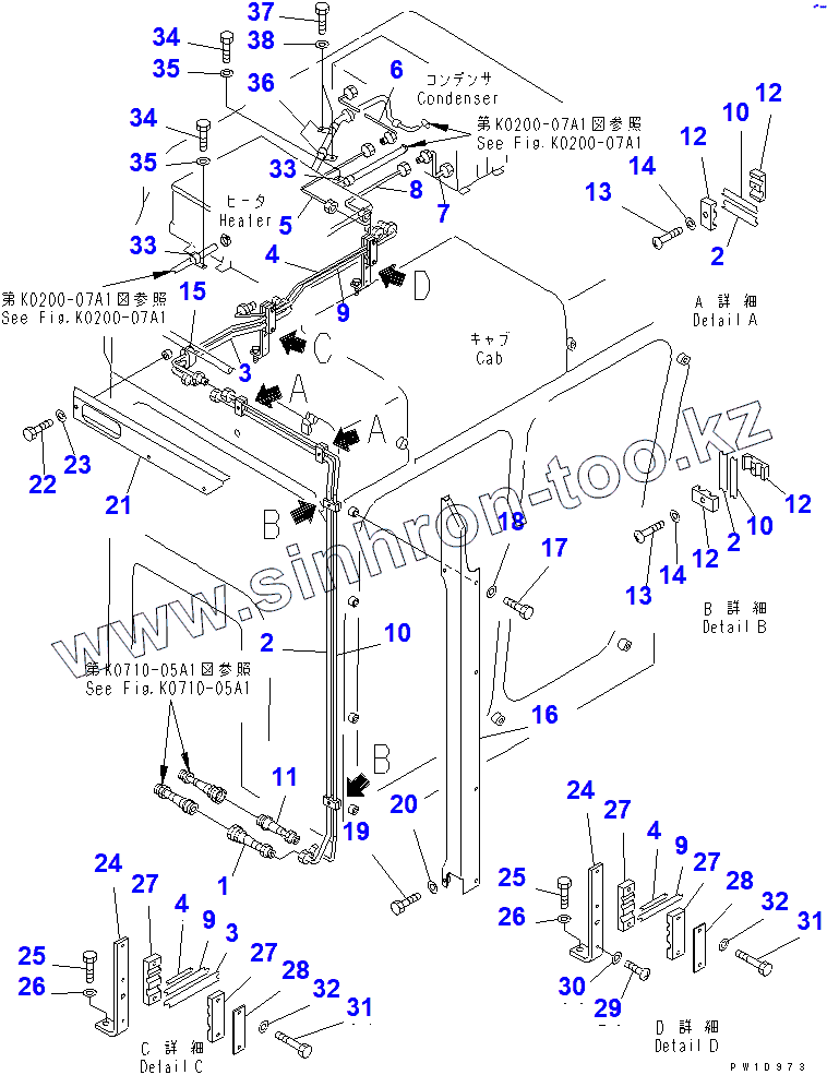 Каталог запасных частей к технике: Komatsu D355C-3. CAB (COOLER PIPING)(14404-)
