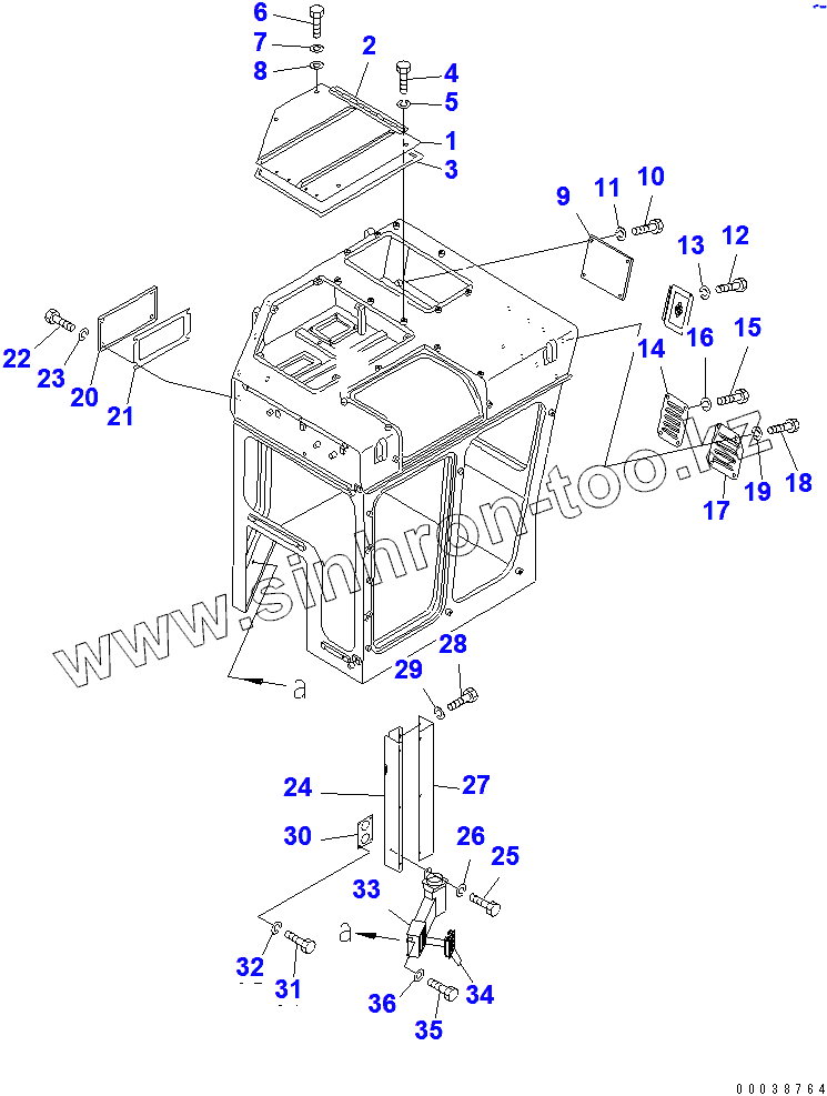 Каталог запасных частей к технике: Komatsu D355C-3. CAB (COVER) (WITH BEACON)(14608-)
