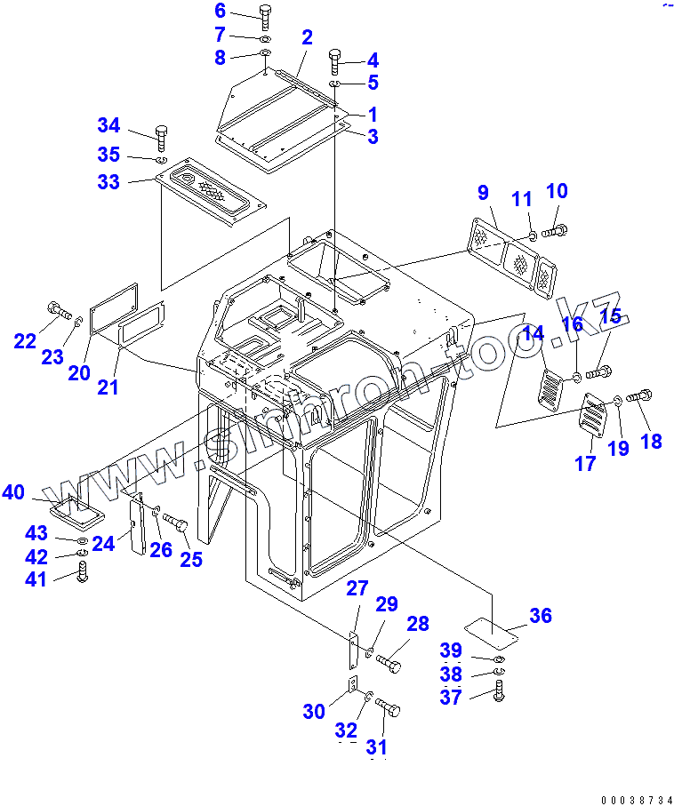 Каталог запасных частей к технике: Komatsu D355C-3. CAB (COVER) (WITH VENTILATOR)(14404-)