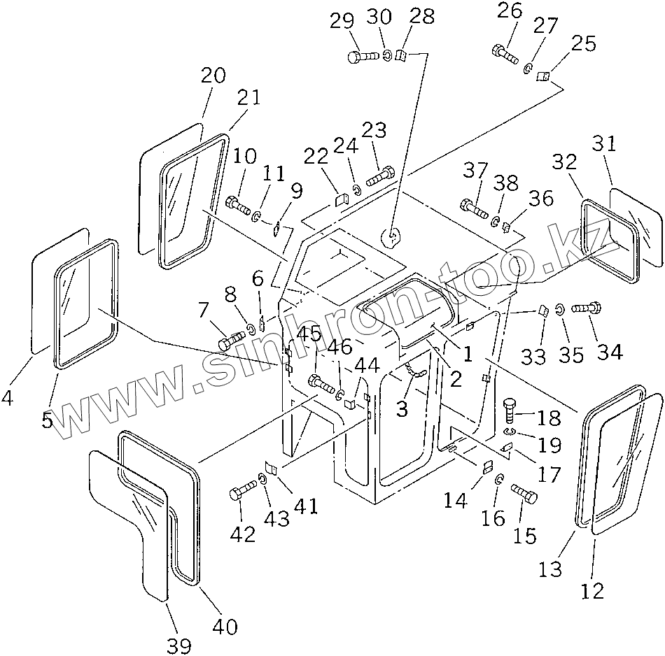 Каталог запасных частей к технике: Komatsu D355C-3. CAB (SIDE WINDOW)(14520-)