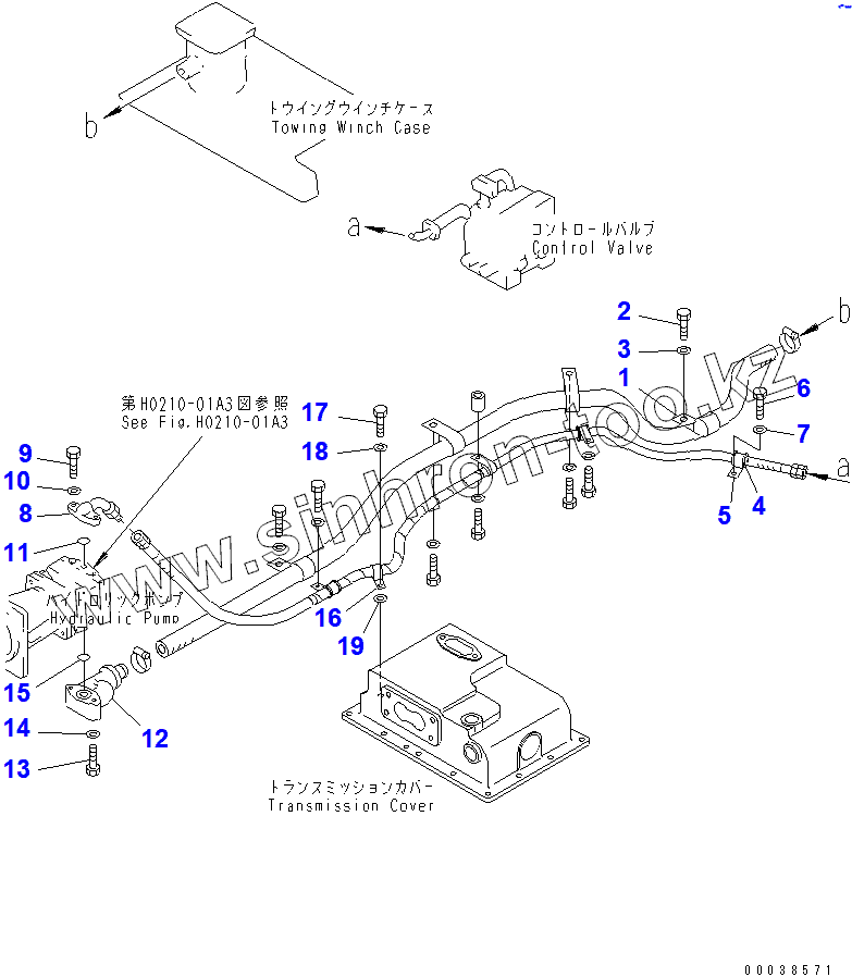 Каталог запасных частей к технике: Komatsu D355C-3. PIPING (FOR TOWING WINCH)
