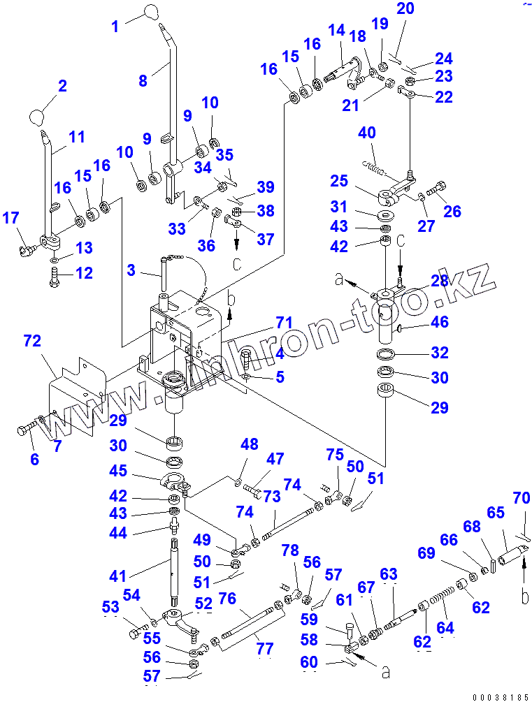Каталог запасных частей к технике: Komatsu D355C-3. TOWING WINCH CONTROL LEVER (1/2)
