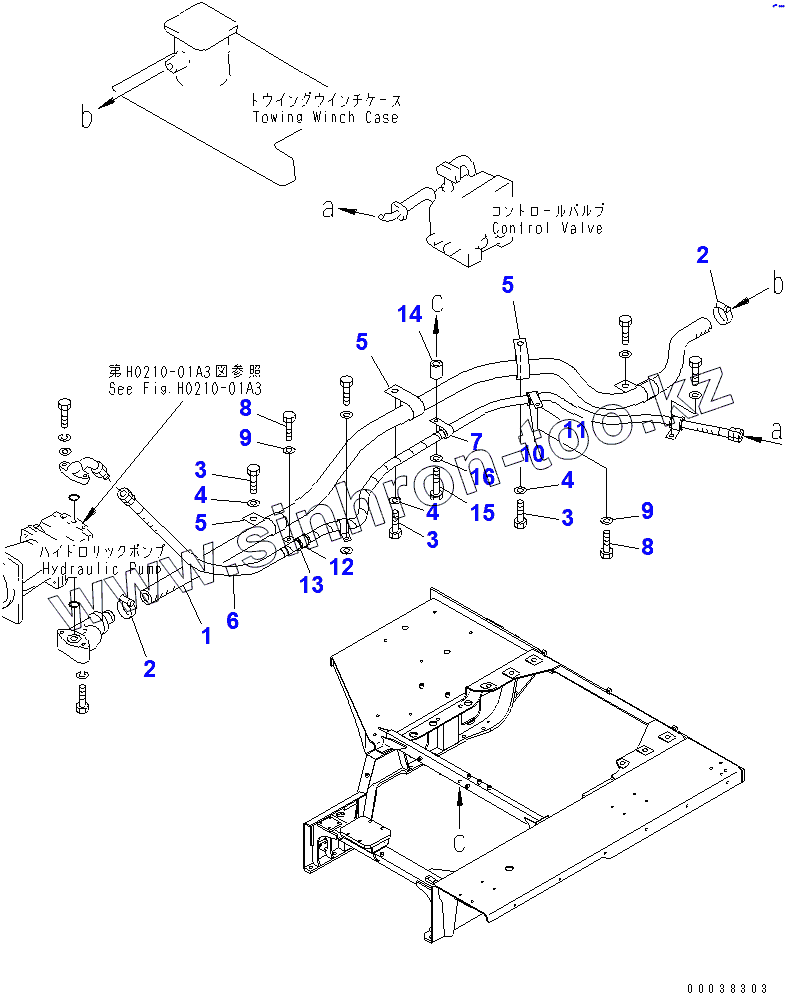 Каталог запасных частей к технике: Komatsu D355C-3. TOWING WINCH PIPING