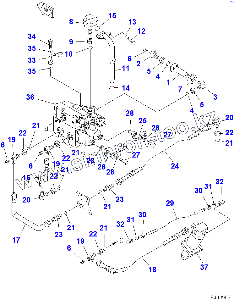 Каталог запасных частей к технике: Komatsu D355C-3. WINCH PIPING (FOR TOWING WINCH)