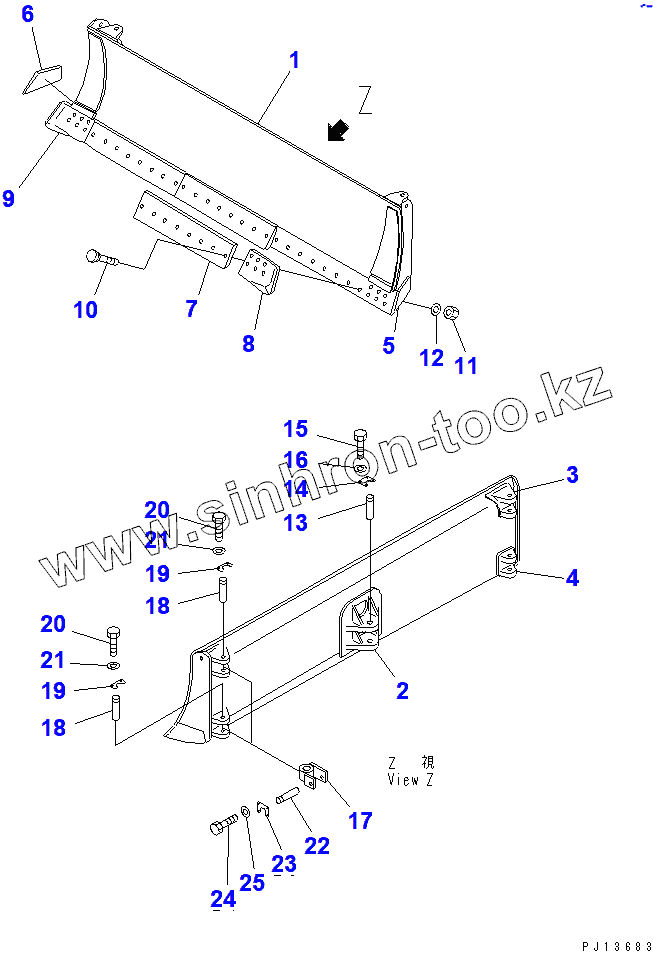 Каталог запасных частей к технике: Komatsu D85A-21. ANGLE BLADE (35001-)
