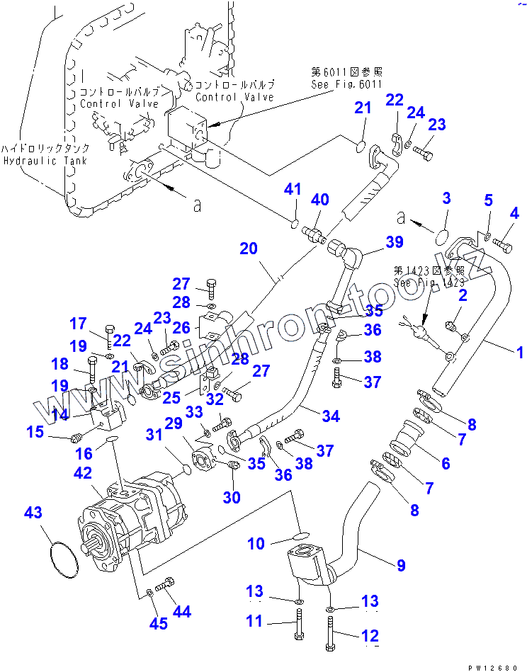 Каталог запасных частей к технике: Komatsu D85A-21. HYDRAULIC PIPING (TANK TO PUMP) (35001-)
