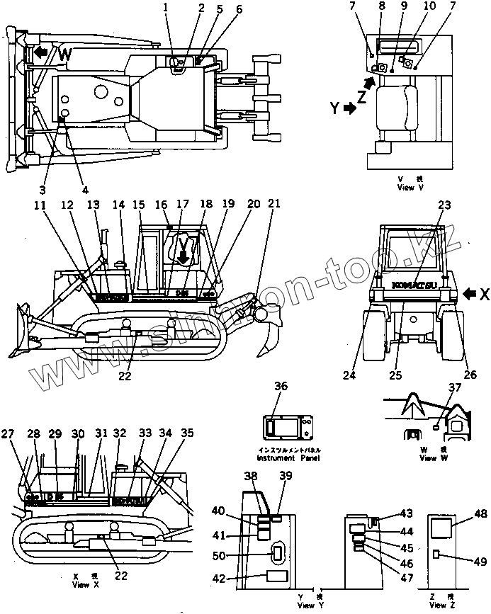 Каталог запасных частей к технике: Komatsu D85A-21. MARKS AND PLATES (RUSSIAN) (35001-36191)
