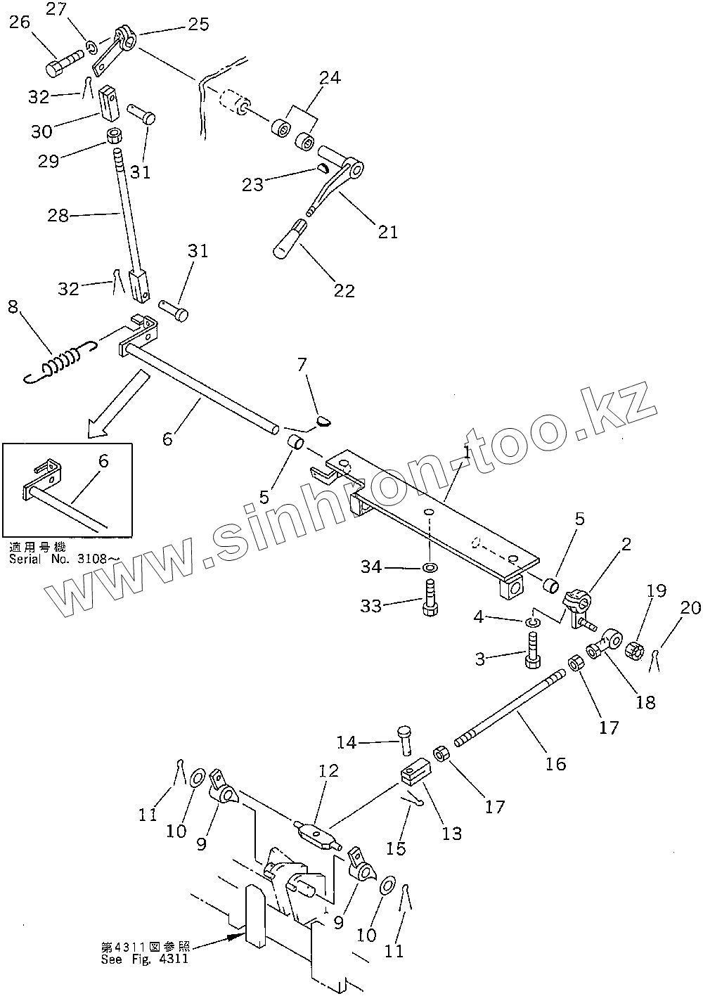 Каталог запасных частей к технике: Komatsu D85A-21. PARKING BRAKE LEVER (35001-)