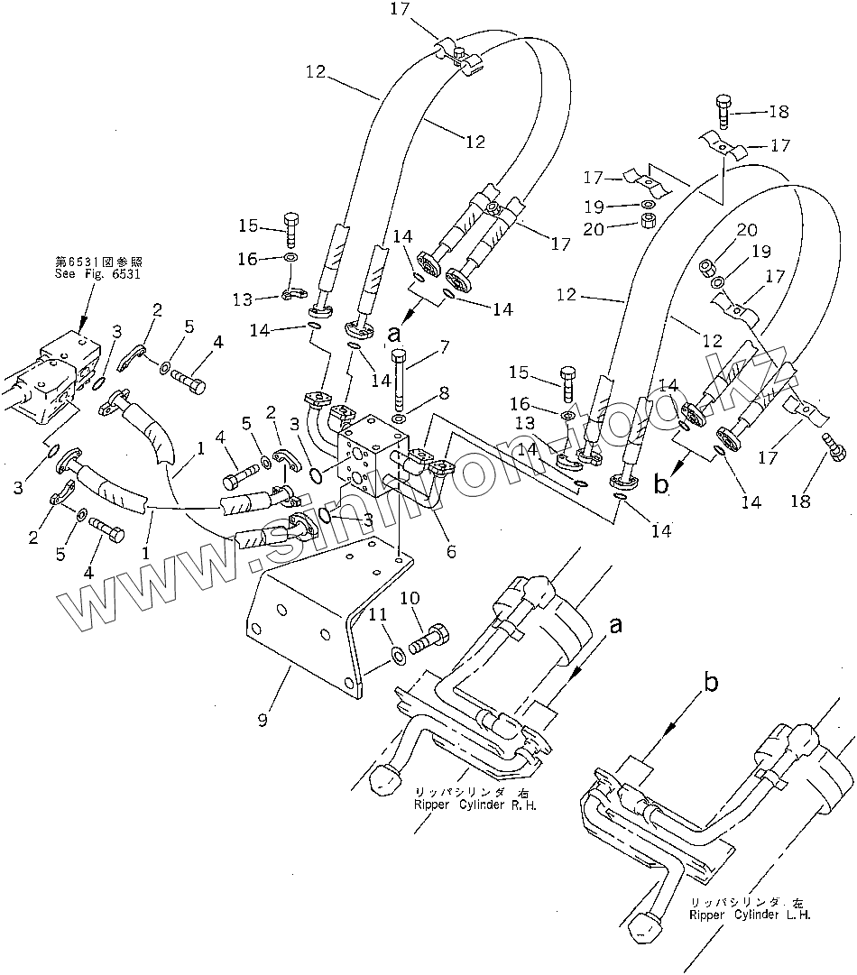 Каталог запасных частей к технике: Komatsu D85A-21. RIPPER CYLINDER PIPING (35001-)