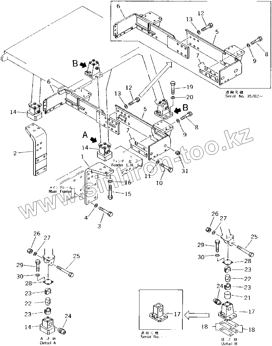Каталог запасных частей к технике: Komatsu D85A-21. ROPS BRACKET (WOODY TERRAIN SPEC.) (35001-)