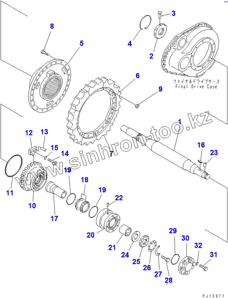 Каталог запасных частей к технике: Komatsu D85A-21. SPROCKET AND SHAFT (35001-)