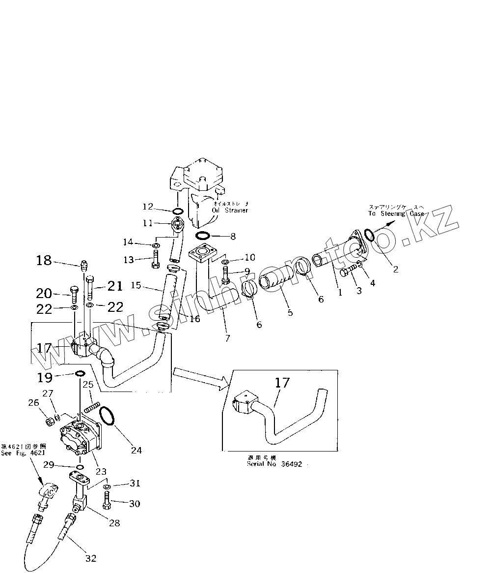 Каталог запасных частей к технике: Komatsu D85A-21. STEERING PIPING (1/3) (35001-)