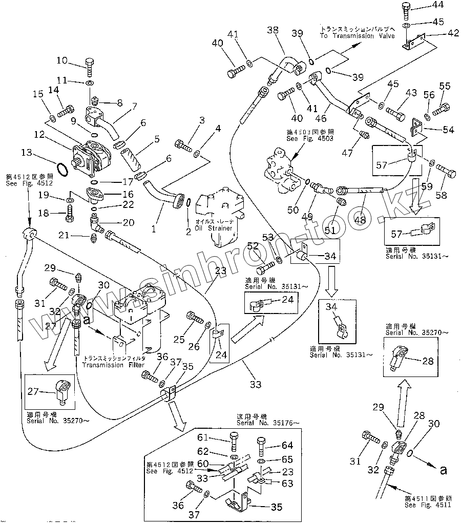 Каталог запасных частей к технике: Komatsu D85A-21. TORQFLOW TRANSMISSION PIPING (35001-35320)