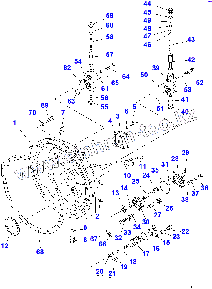 Каталог запасных частей к технике: Komatsu D85A-21. TORQUE CONVERTER (1/2) (35001-)