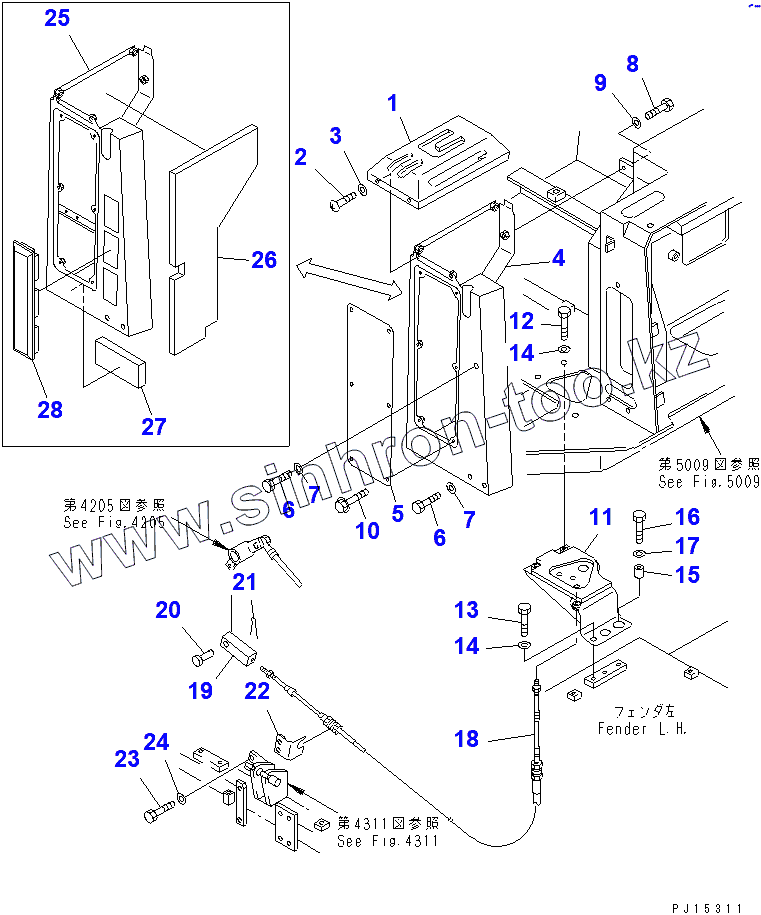 Каталог запасных частей к технике: Komatsu D85A-21. TRANSMISSION CONTROL LINKAGE (2/3) (35477-)