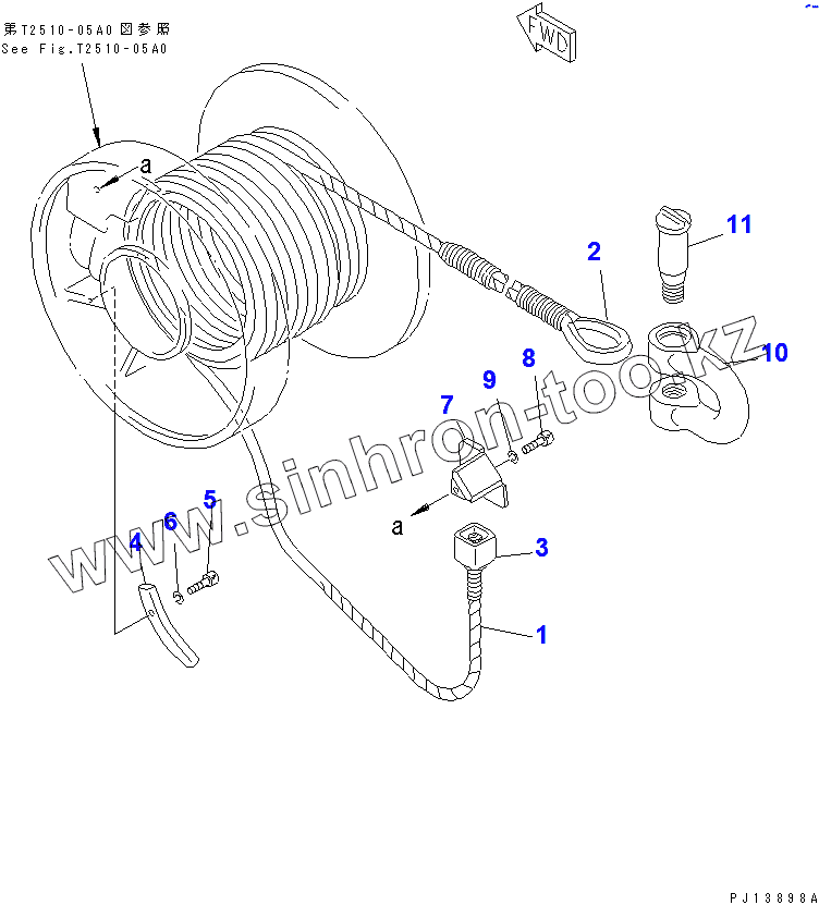 Каталог запасных частей к технике: Komatsu D85A-21. CABLE (FOR TOWING WINCH)