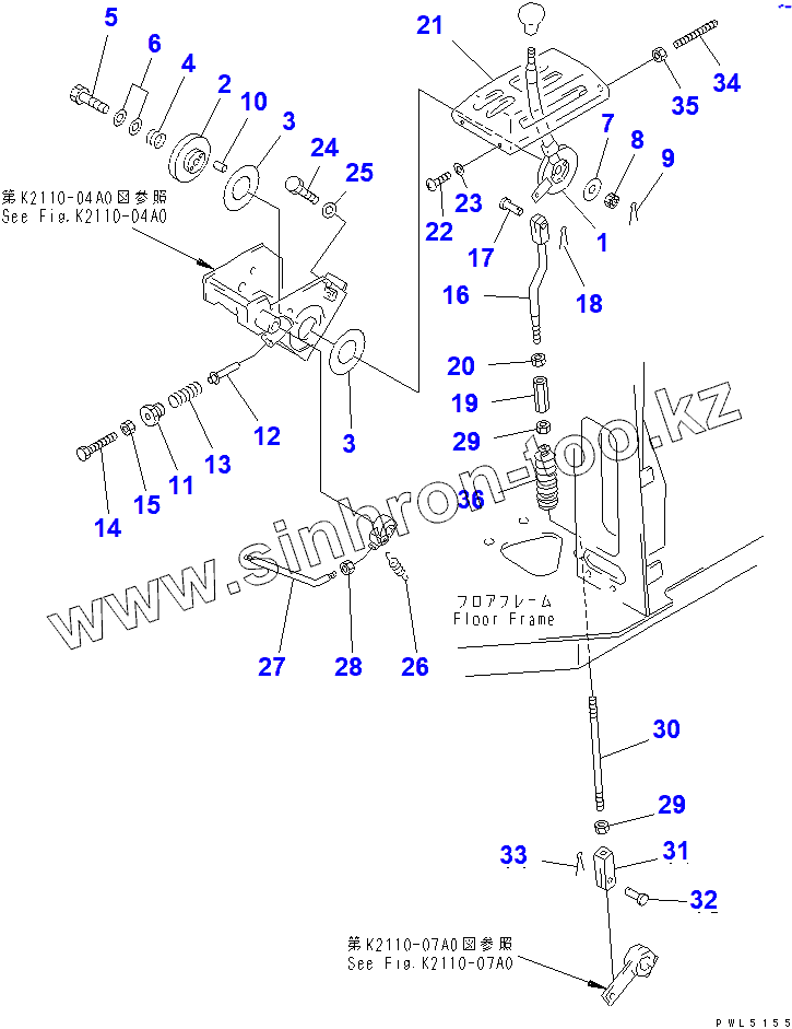 Каталог запасных частей к технике: Komatsu D85A-21. FUEL CONTROL LEVER