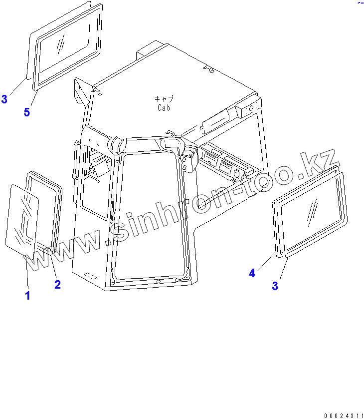 Каталог запасных частей к технике: Komatsu D85A-21. STEEL CAB (FRONT AND SIDE WINDOW)