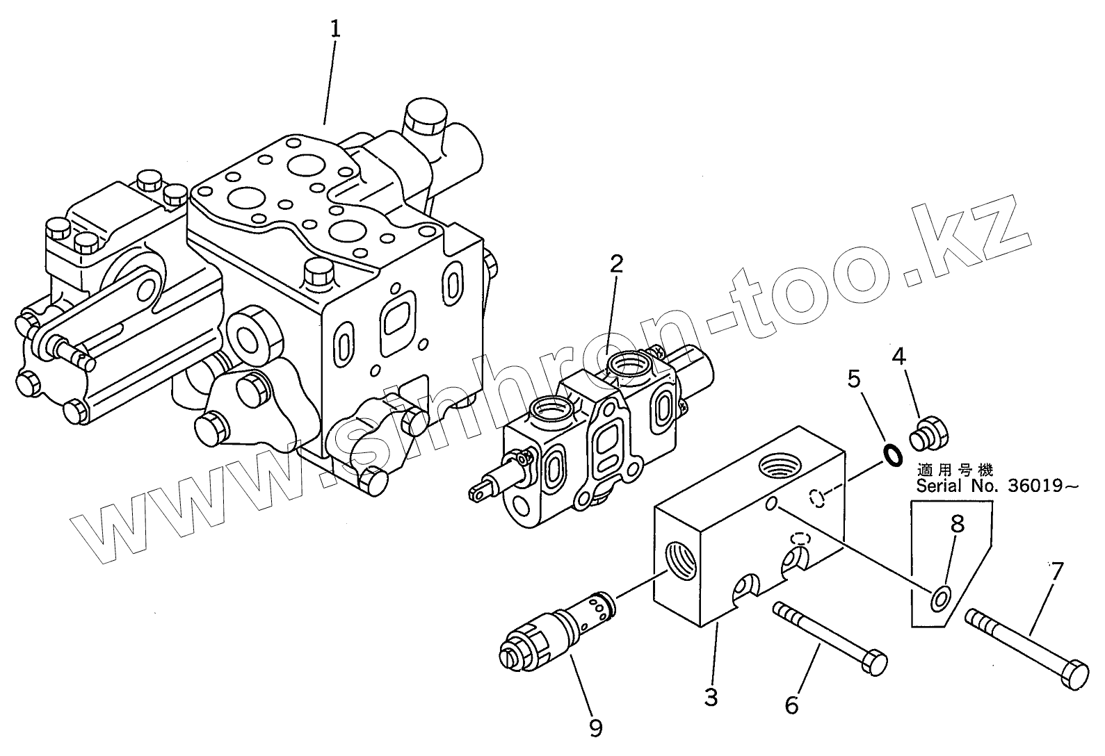 Каталог запасных частей к технике: Komatsu D85A-21B. BLADE CONTROL VALVE (1/5)(35001-)